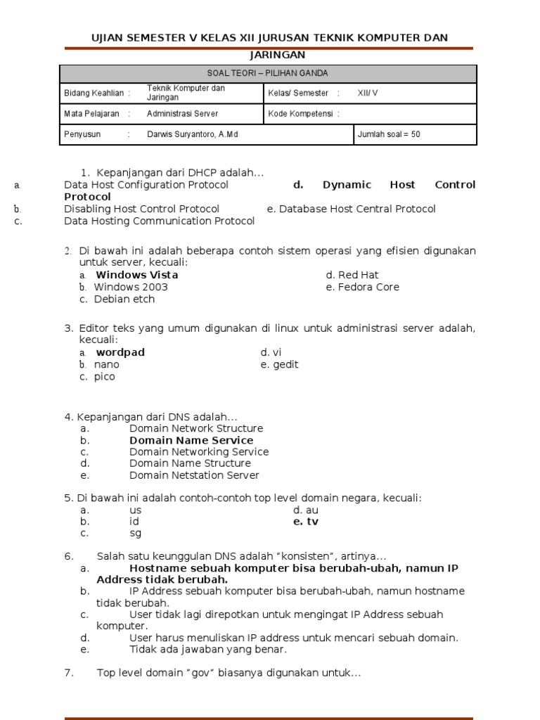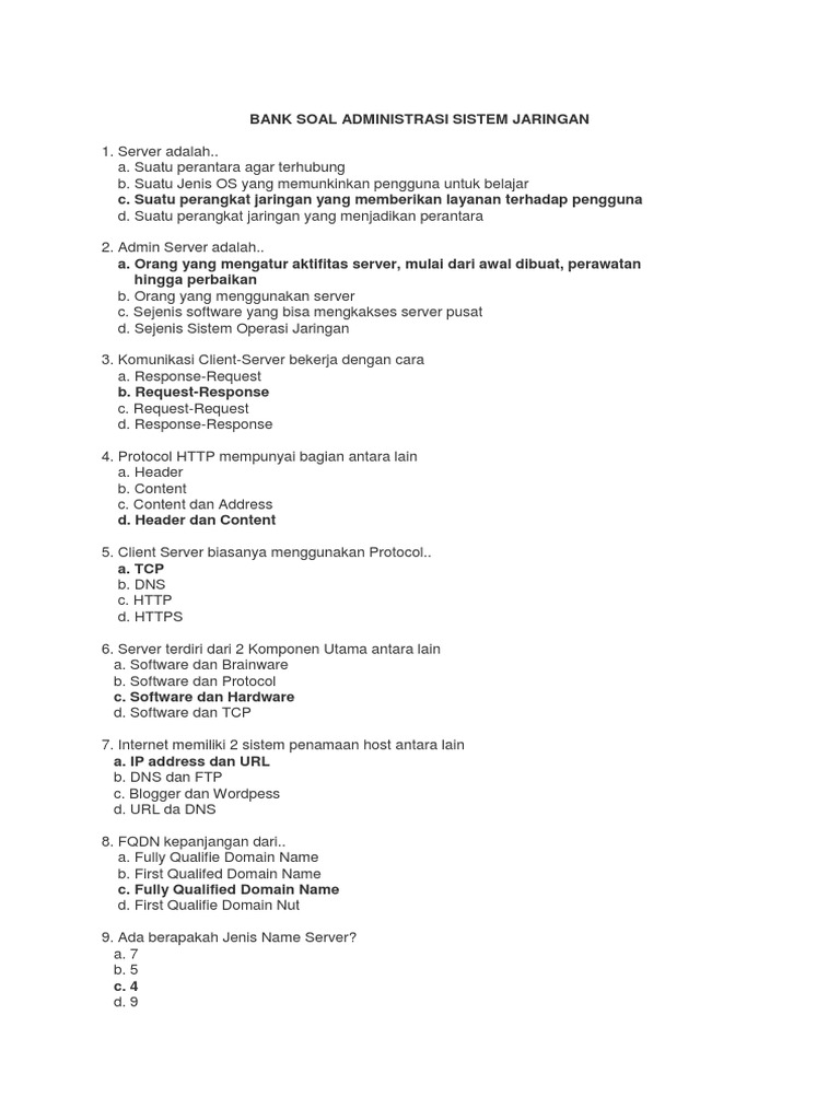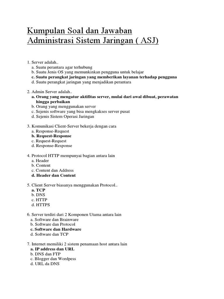 Kumpulan Soal Pilihan Ganda Dan Kunci Jawaban Administrasi Jaringan Komputer Tentang Web Server Laman 2 Dari 2 Berbagiruang Com