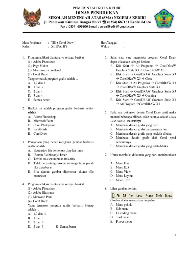 Soal Pilihan Ganda Coreldraw Sma Dan Jawabannya Tips Dan Info Menarik