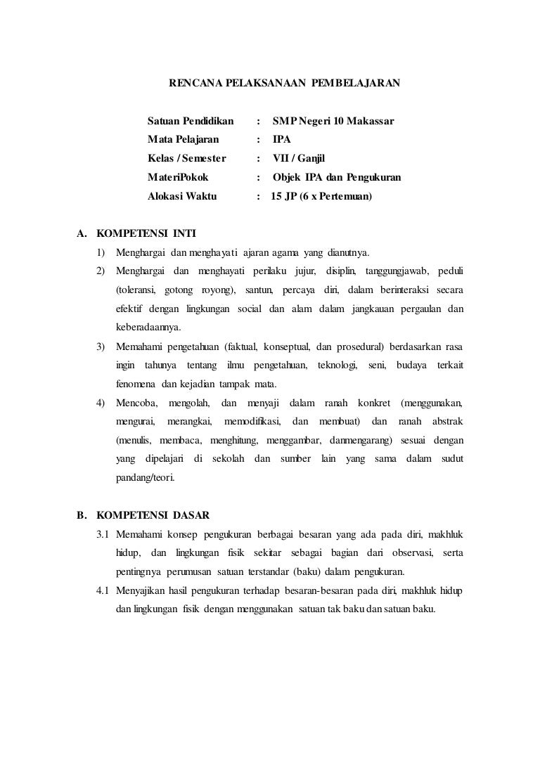 Rpp Ipa Kelas 7 Bab 1 Objek Ilmu Pengetahuan Alam Dan Pengamatannya