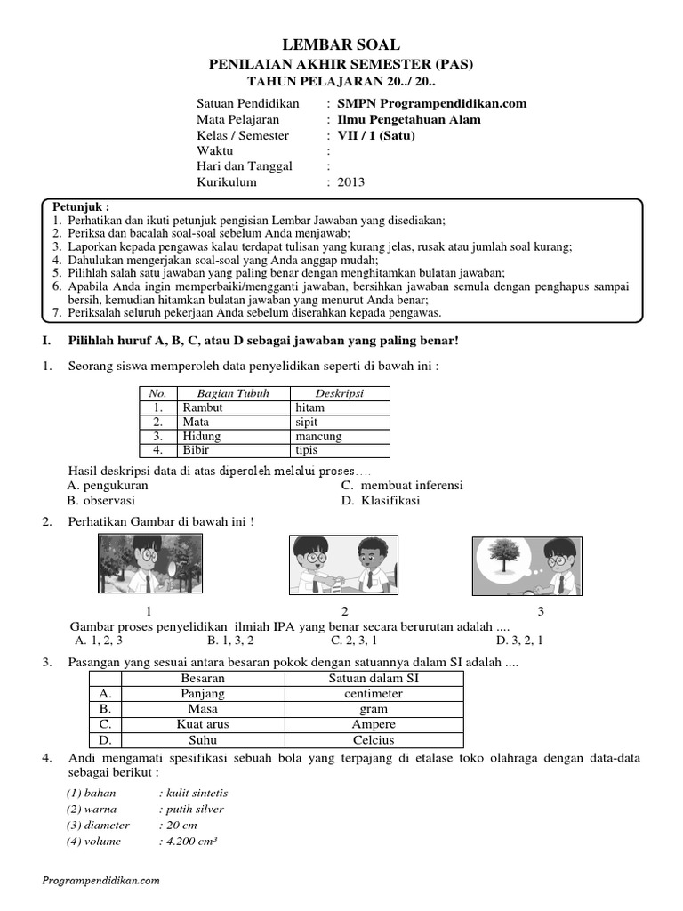 Soal Objek Ipa Dan Pengamatannya Materi Ipa Kelas 7 Smp Mts Kurikululum 2013