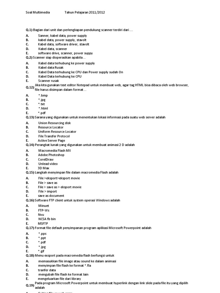 Silabus desain media interaktif kelas xiiTelah hadir rpp 1 lembar revisi 2020. Kumpulan-soal-desain-multimedia-interaktif-kelas-12-dan-jawabanya Berikut ini adalah file tentang kumpulan-soal-desain-multimedia-interaktif-kelas-12-dan-jawabanya yang bisa kalian unduh secara gratis dengan menekan tombol download pada tautan link di bawah ini. Soal Pilihan Ganda dan Jawaban DESAIN MEDIA INTERAKTIF semester Ganjil soal essay desain multimedia interaktif kelas xii contoh soal desain multimedia interaktif kelas 12 semester 2 soal multimedia kelas 12.