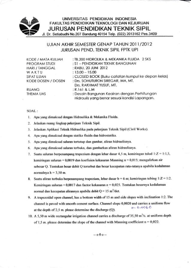 Soal Uas Mekanika Dan Hidrolika Fluida