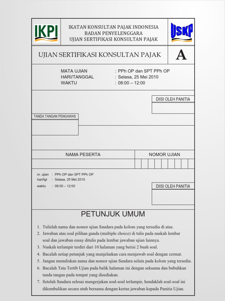 Kumpulan soal uskp c pdf spt badan. Kewajiban Memiliki NPWPNPPKP 250304. Contoh soal essay ujian sertifikasi konsultan pajak uskp review. SOAL MULTIPLE CHOICE Bobot 15 Pilihlah jawaban yang paling benar dengan cara memberi tanda silang X b c atau d.