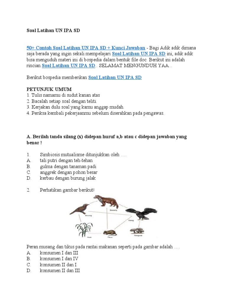 50 Contoh Soal Latihan Un Ipa Sd Kunci Jawaban