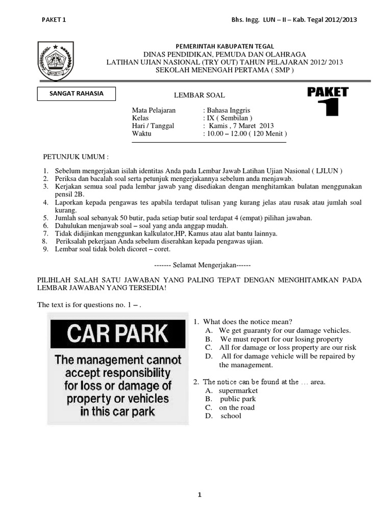 Latihan Soal Un Bahasa Inggris Smp 2015 Paja Tapuih